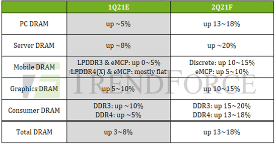 | Price Projections of Different Categories of DRAM Products, 1Q21-2Q21 |