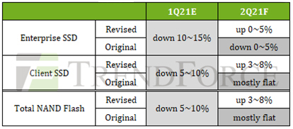 | Forecasted QoQ Increases in Client SSD and Enterprise SSD Prices, 1Q21-2Q21 |